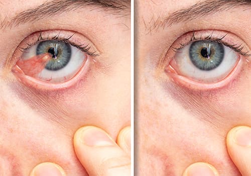 É uma condição ocular caracterizada pelo crescimento anormal de tecido na conjuntiva, uma membrana transparente que cobre a parte branca do olho (esclera) e a superfície interna das pálpebras. Esse crescimento geralmente se desenvolve a partir do canto interno do olho em direção à córnea, podendo avançar sobre ela.
